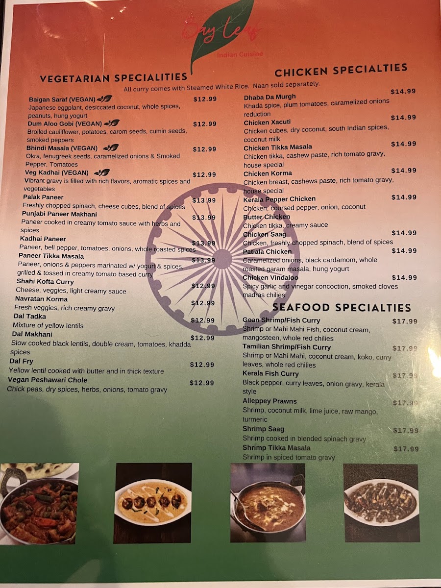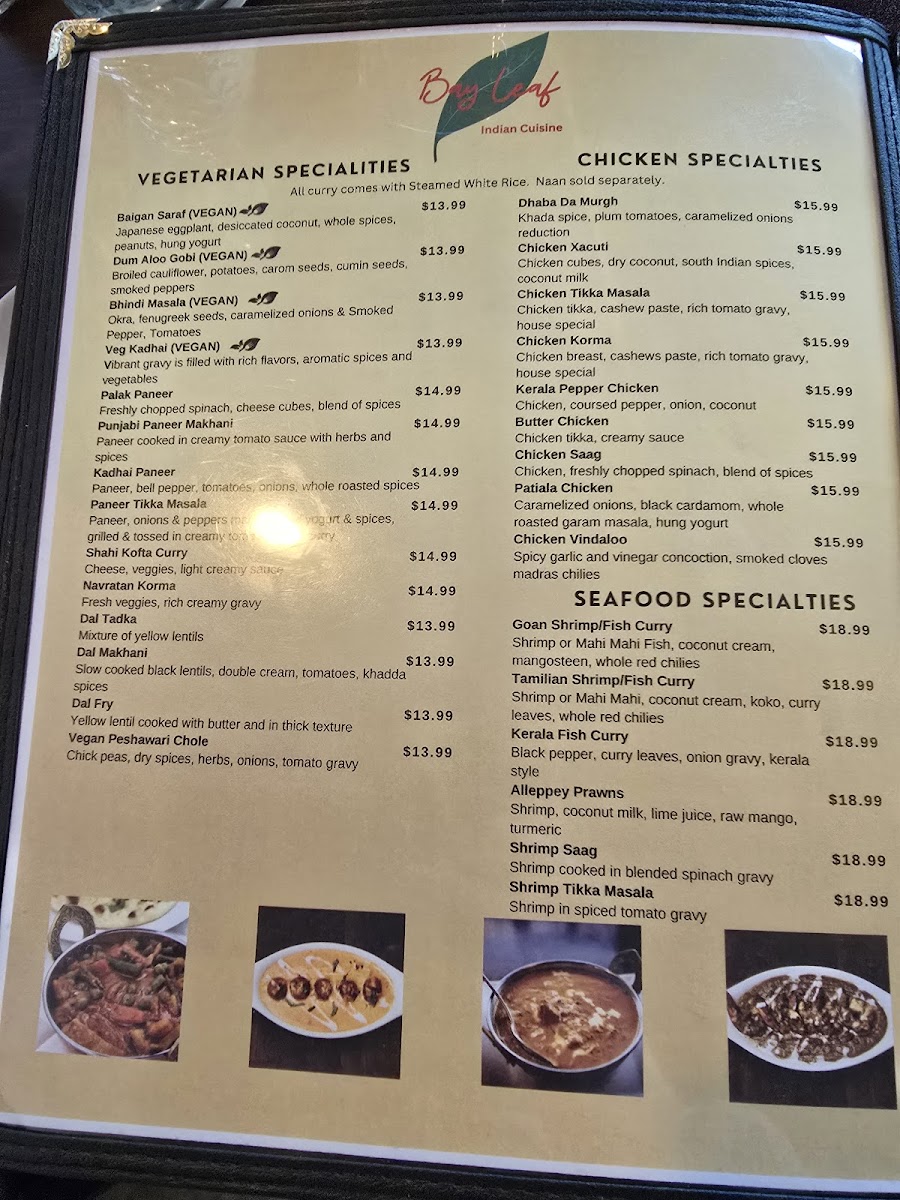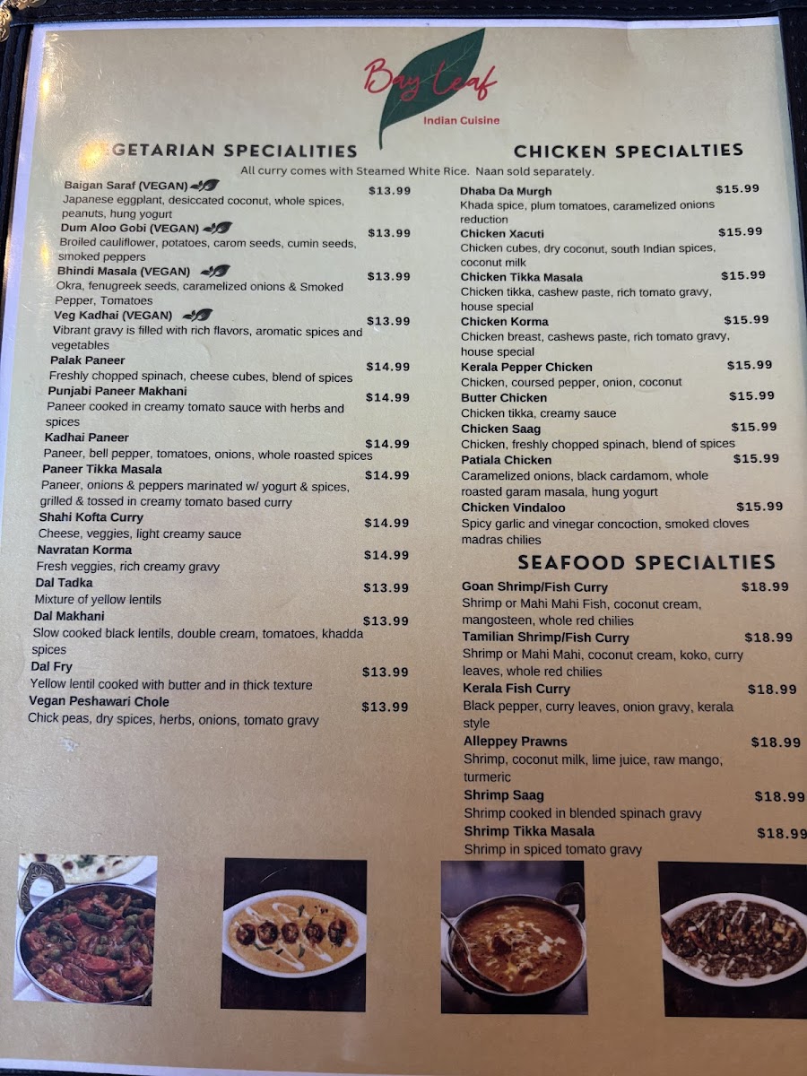 Shrimp cooked with spinach, onions, tomatoes, and a blend of Indian spices.